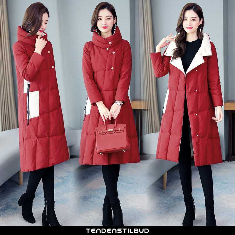 Vinterjakke dame : bomuld jakke bomuldsjakke varm langærmet skinny vinter lang 2021 elegante alt matcher grå midten, farve : grå, bordeaux, sort.