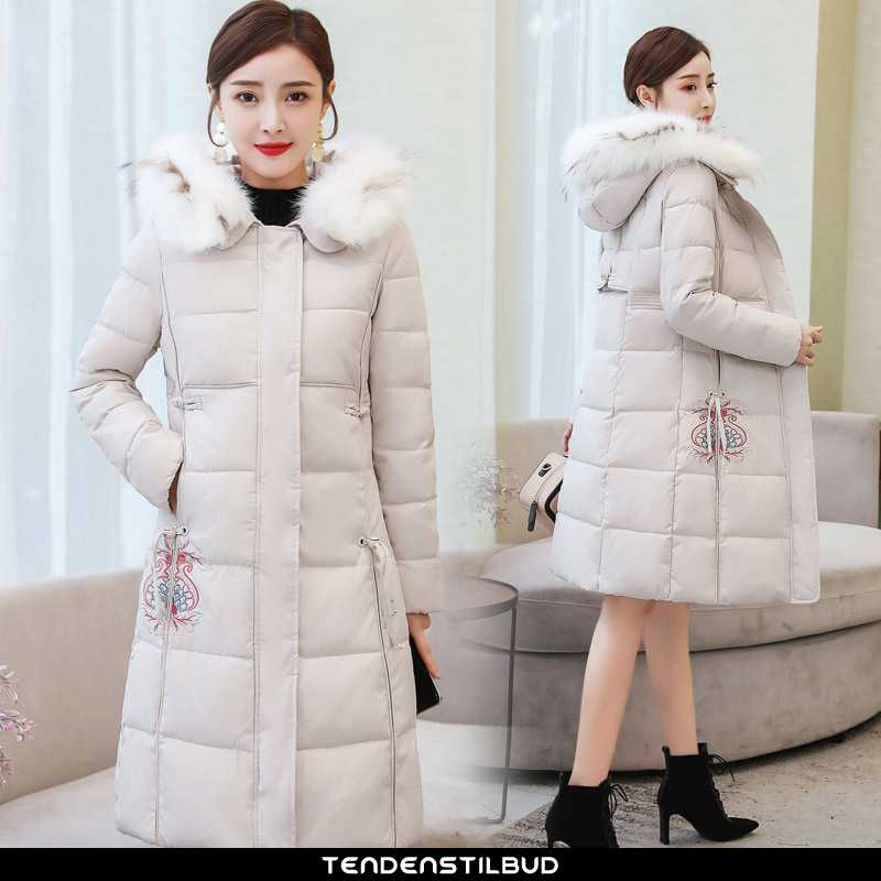 Vinterjakke dame : bomuld jakke bomuldsjakke varm langærmet tryk skinny vinter lang 2021 elegante alt matcher midten rød, farve : rød, blå, beige, sort.
