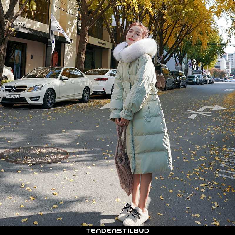 Vinterjakke dame : bomuld jakke frakke bomuldsjakke tykke vinter lang 2021 pelskrave ny stor mesh midten kvinder rød grøn, farve : grøn.