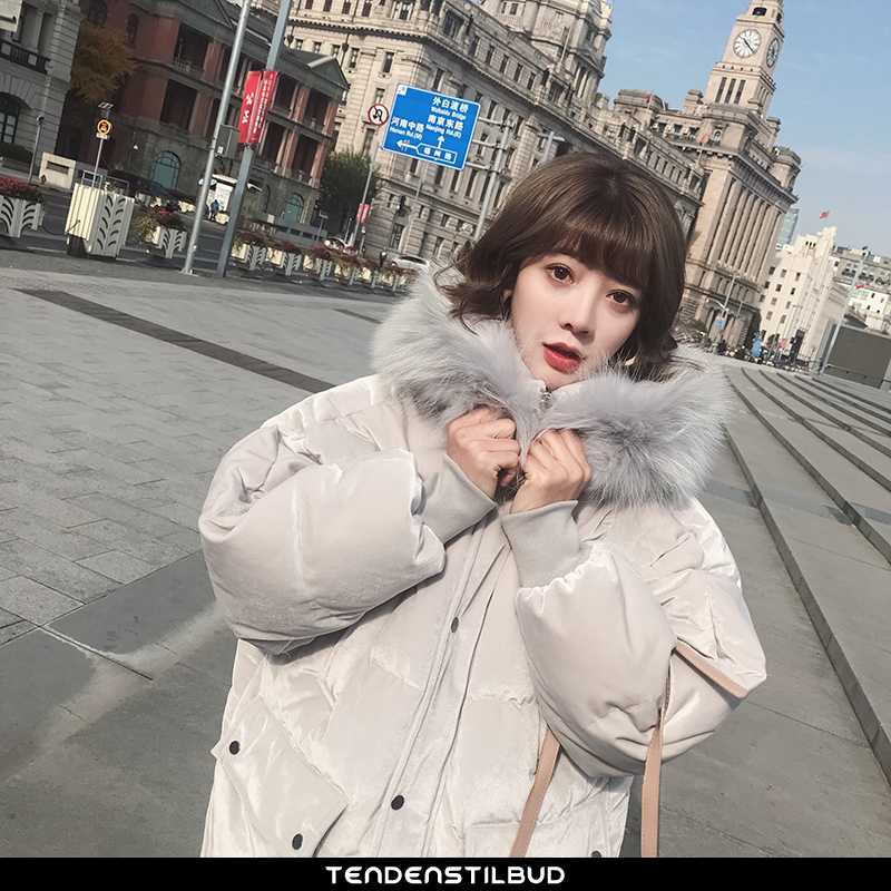 Vinterjakke Dame Bomuldsjakke Velour Guld