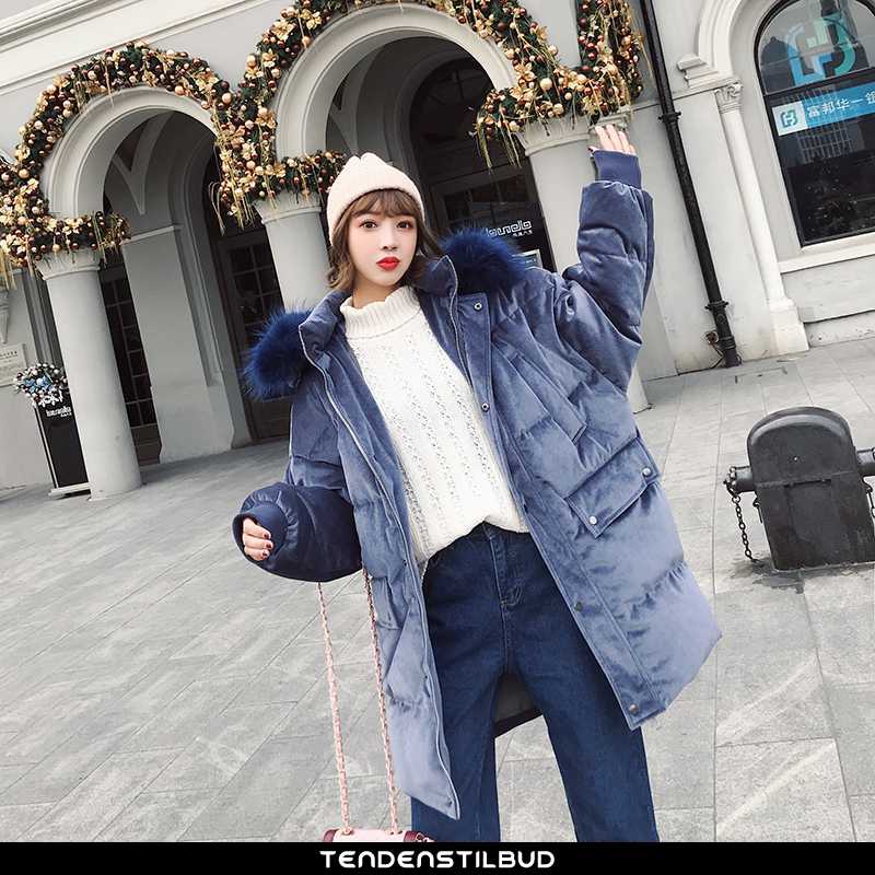 Vinterjakke dame : bomuldsjakke velour blå guld, farve : beige, blå.