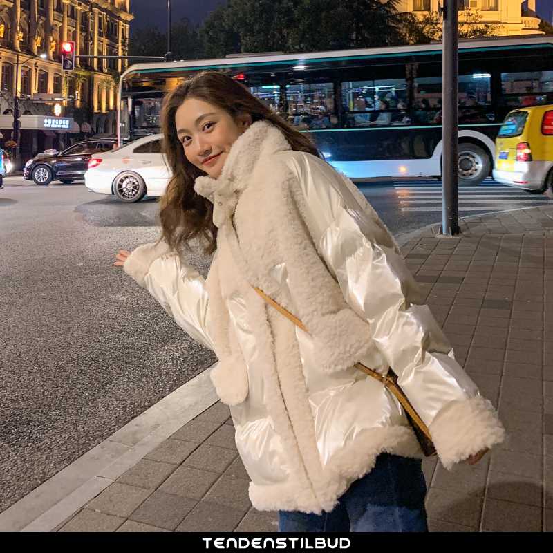 Vinterjakke dame : frakke bomuldsjakke vinter hvid splejsning stor, farve : hvid.